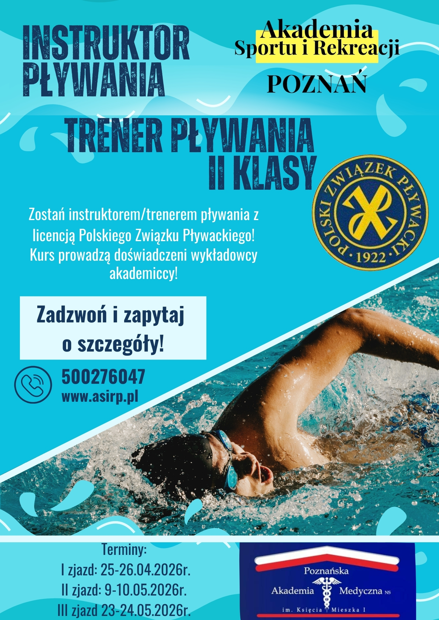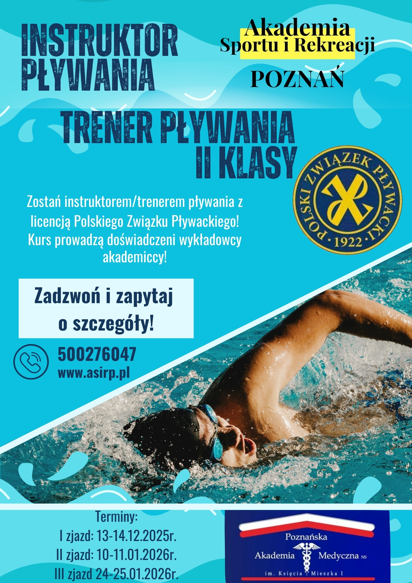 Zajęcia części ogólnej oraz specjalistycznej z doświadczonymi wykładowcami akademickimi oraz trenerami PZP oparte o aktualną wiedzę w zakresie teorii i metodyki pływania.